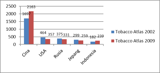 Lima Negara dengan Konsumsi Rokok Terbesar (milyar batang)