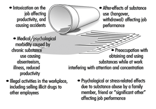 Pada industri modern dibutuhkan suatu kewaspadaan dan penanggulangan yang cepat terhadap suatu gangguan dan membutuhkan persepsi yang akurat dari setiap pekerja khususnya terhadap konsumsi minuman beralkohol. Gangguan pada keadaan ini dapat menyebabkan suatu kecelakaan maupun masalah kesehatan yang serius walau sebenarnya keadaan tersebut dapat di intervensi secara akurat dan efisien dari pihak perusahaan. Suatu trend yang penting saat ini adalah pengembangan intervensi administratif terhadap obat-obat psikoaktif dan alkohol di tempat kerja (Blume, 2011).