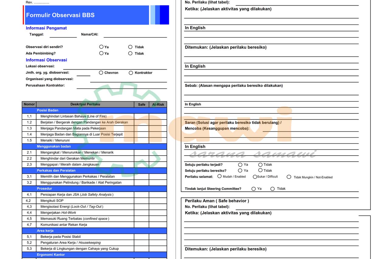 ObservasiMemungkinkan pekerja untuk bertindak berdasarkan pengamatan mereka sendiri sehingga mendorong mereka melakukan observasi sendiri.Prinsipnya berfokus pada safe dan unsafe behaviour.Prinsipnya berfokus pada safe dan unsafe behaviour dan kondisi kerja yang tidak berkeselamatan.Fokusnya pada safe dan unsafe behaviour yang dibedakan dalam checklist observasi.